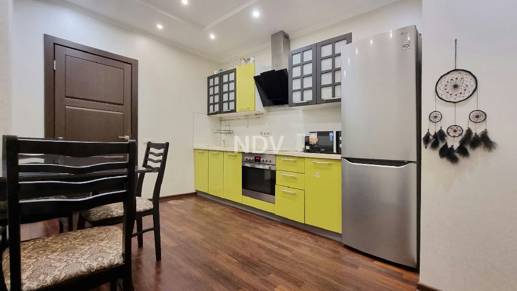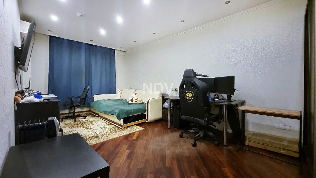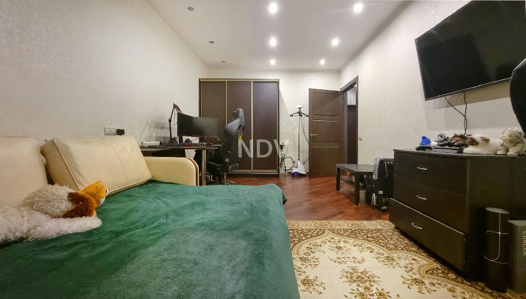 - Надежные окна с шумоизоляцией, кондиционер в спальне, итальянские обои и шикарный натуральный паркет под матовым темным лаком..